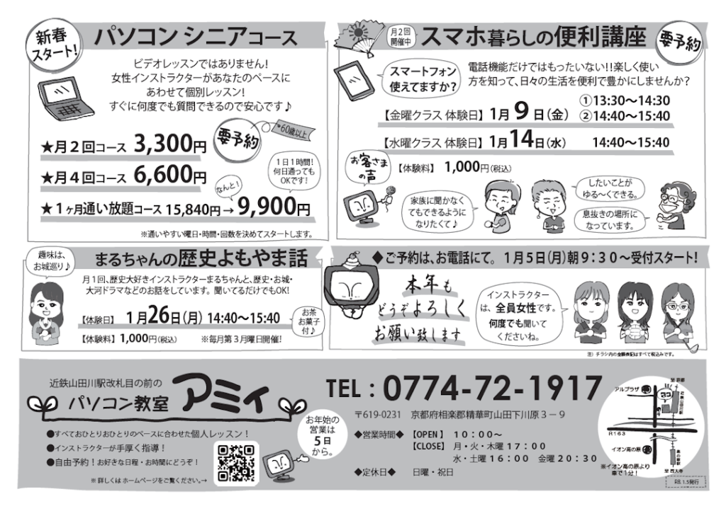 本年もパソコン教室アミィをよろしくお願いいたします